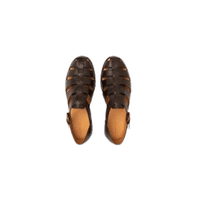 Sandals with woven straps covering most of the foot, offering comfort and protection.