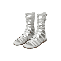 Flat sandals with many straps running up the foot or leg, inspired by ancient Roman style.
