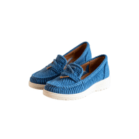 Slip-on shoes with a low heel, usually leather or suede, giving a smart yet relaxed look.