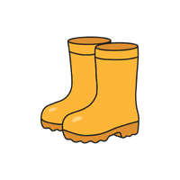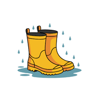 Rubber or plastic boots made for wet conditions, often worn in heavy rain.