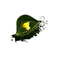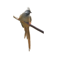 A small bird that moves quietly in trees and eats fruits and leaves.