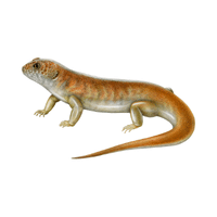 A smooth-bodied lizard with short legs that moves quickly on the ground.