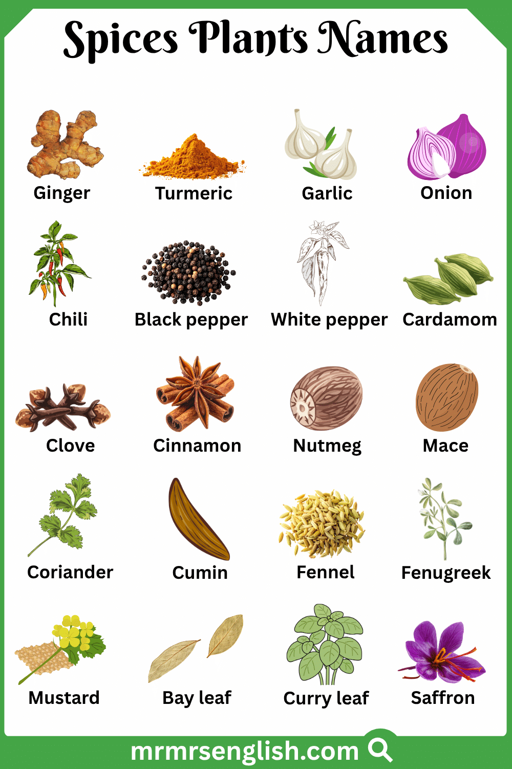 Types of Spices Plants in English with Pictures