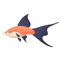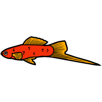 Swordtail with long, lyre-shaped tail, active swimmer, moderately peaceful, ideal for ornamental tanks.