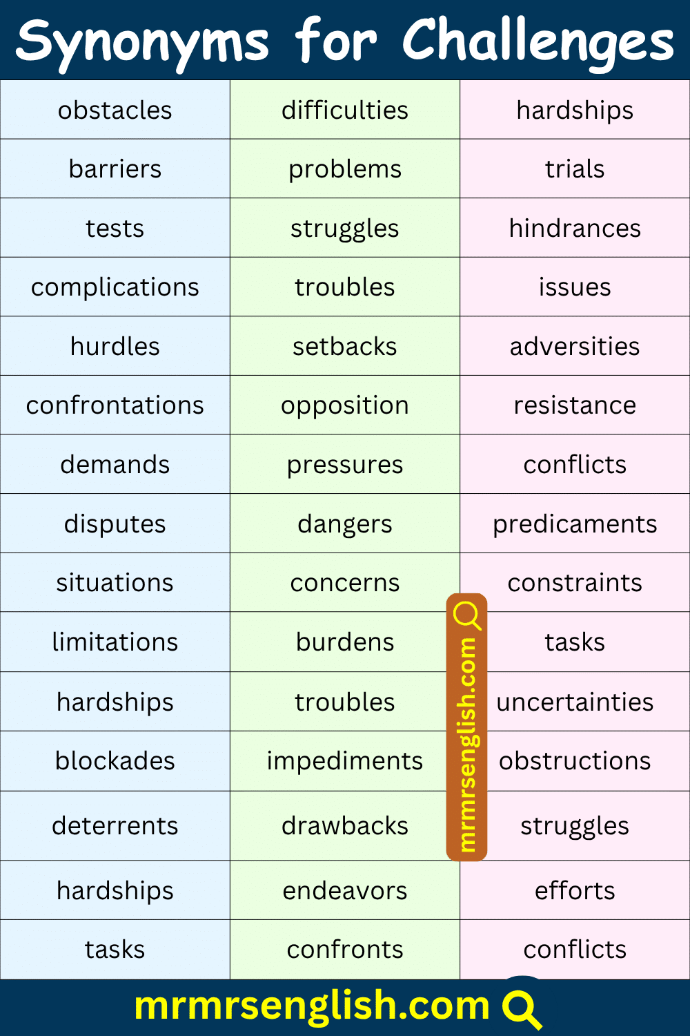 100 Challenges Synonyms in English with Pictures