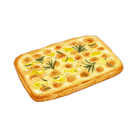 Italian flat oven-baked bread flavored with olive oil, herbs, and salt, often eaten as an appetizer.