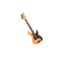 A bass guitar that uses electricity to amplify low rhythmic sounds.