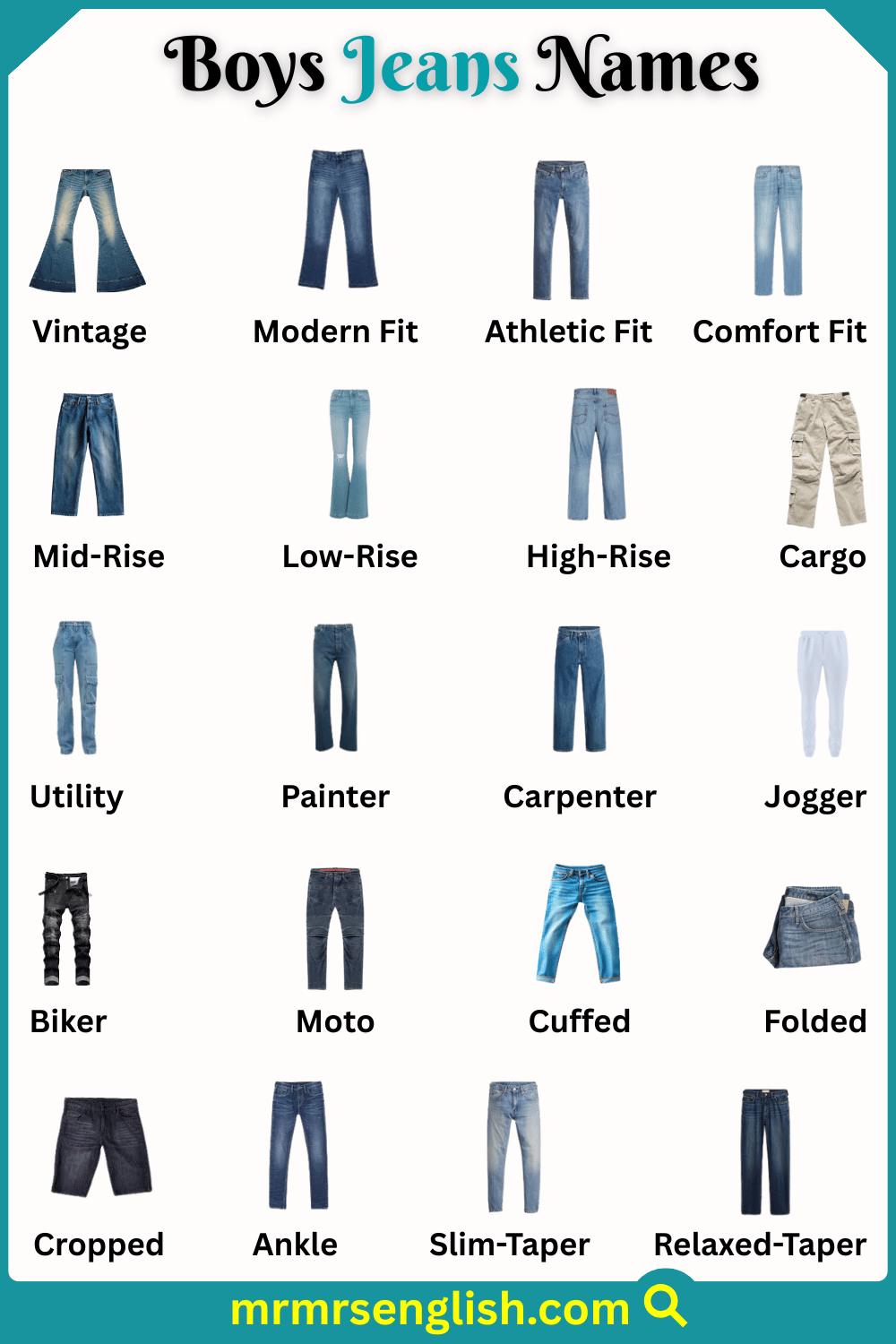 Types of Jeans Names for Boys