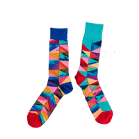 Socks featuring printed images, shapes, or logos, used for style and self-expression.