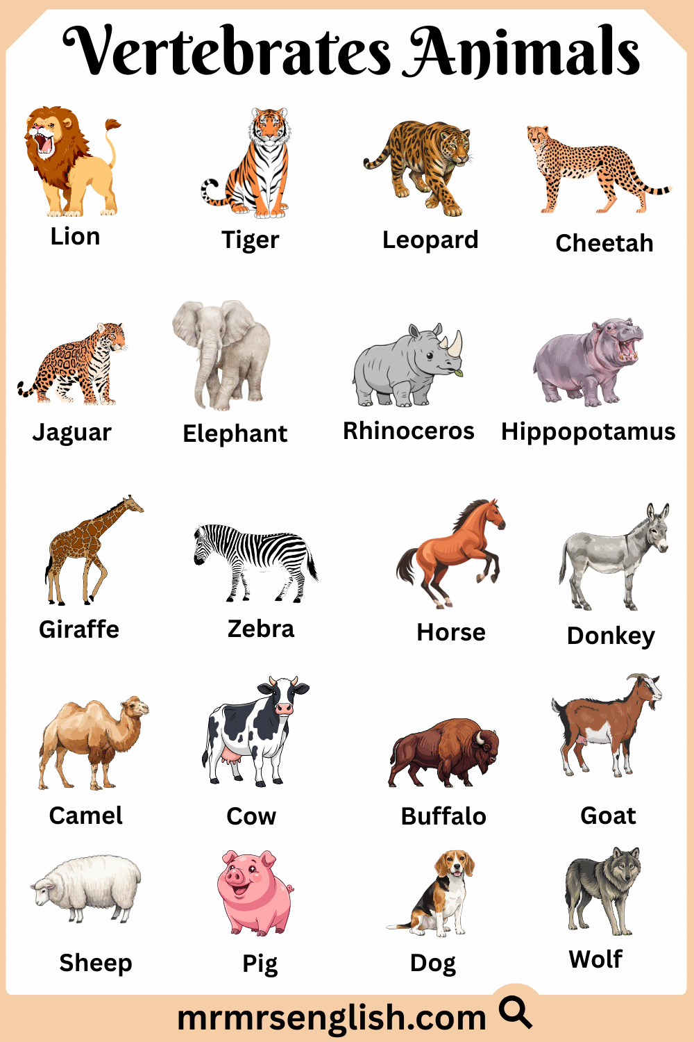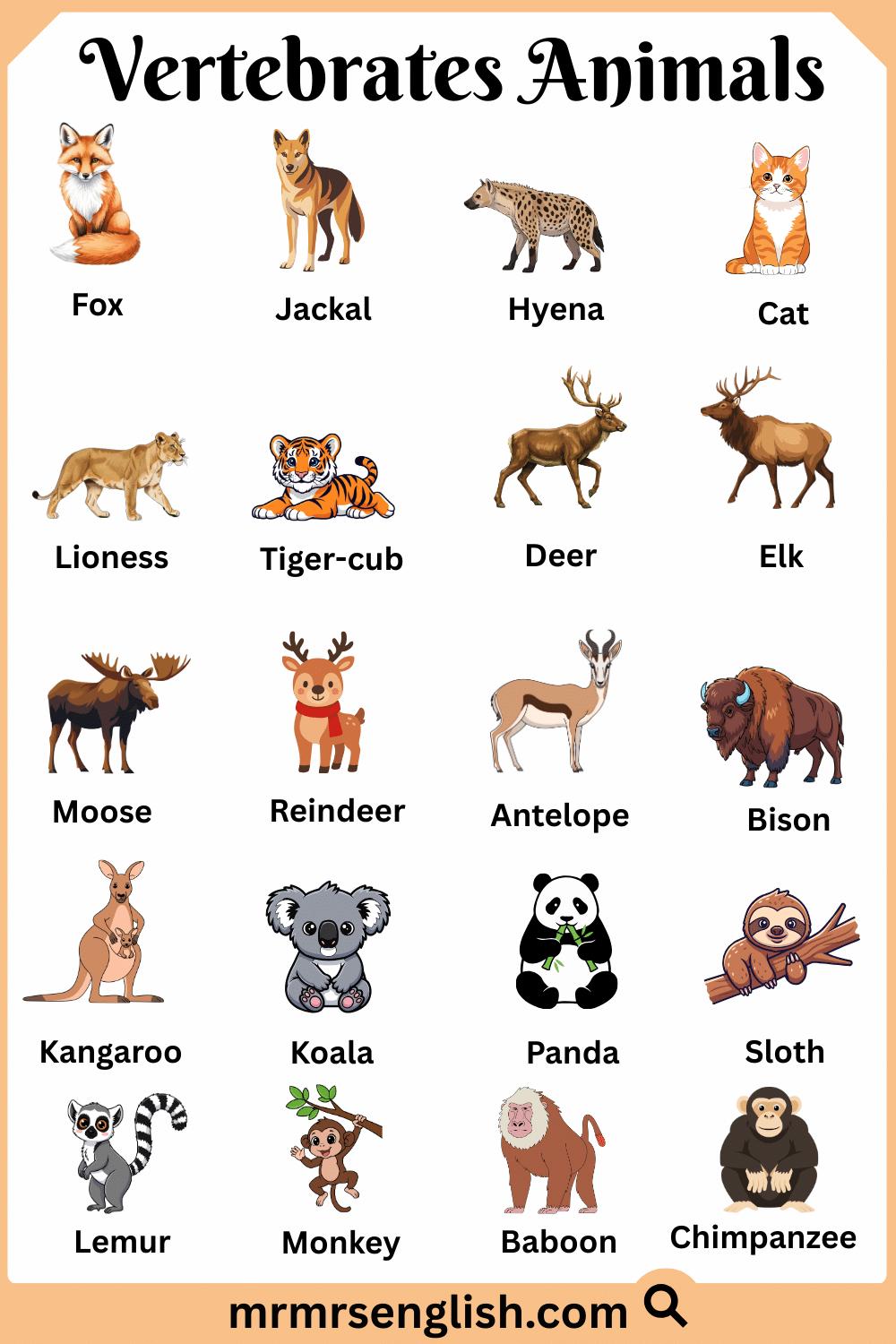 Vertebrates Animals Names in English