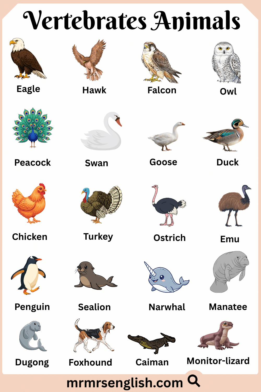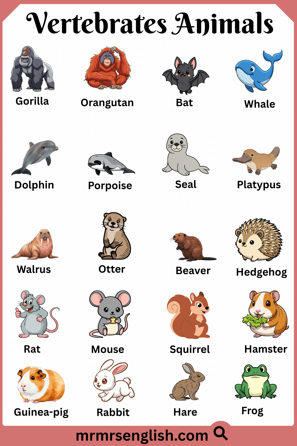 20 Name of Vertebrate Animal in English