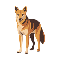 A strong wild carnivore with powerful jaws, often hunting in packs and scavenging leftovers.