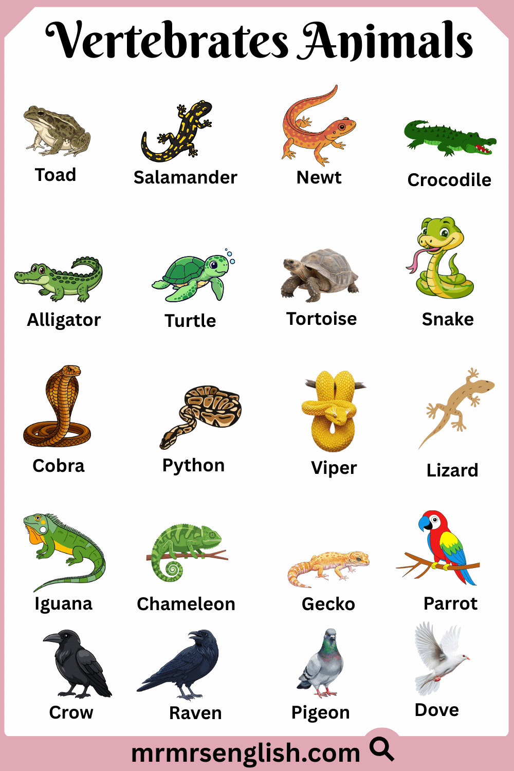 Common Names of Vertebrates Animals with Pictures