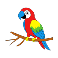 A colorful bird with a strong curved beak, known for mimicking sounds and speech.
