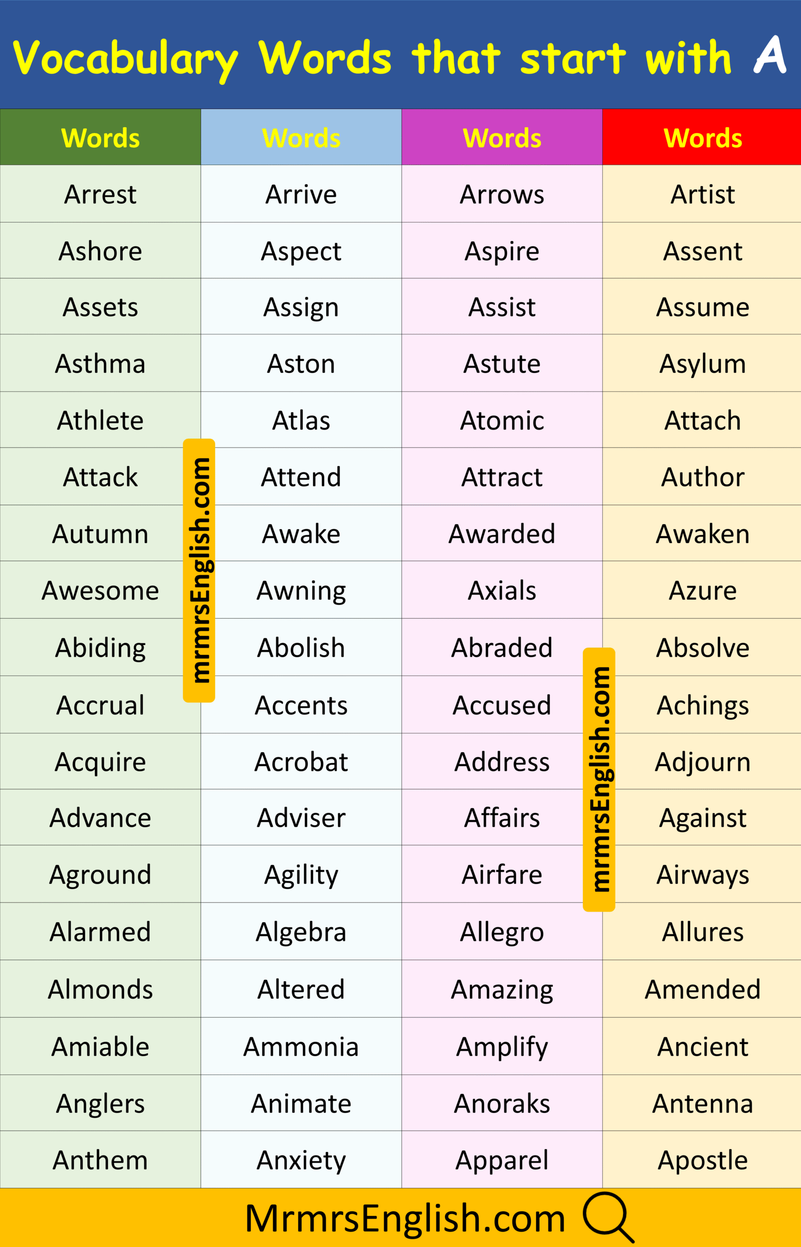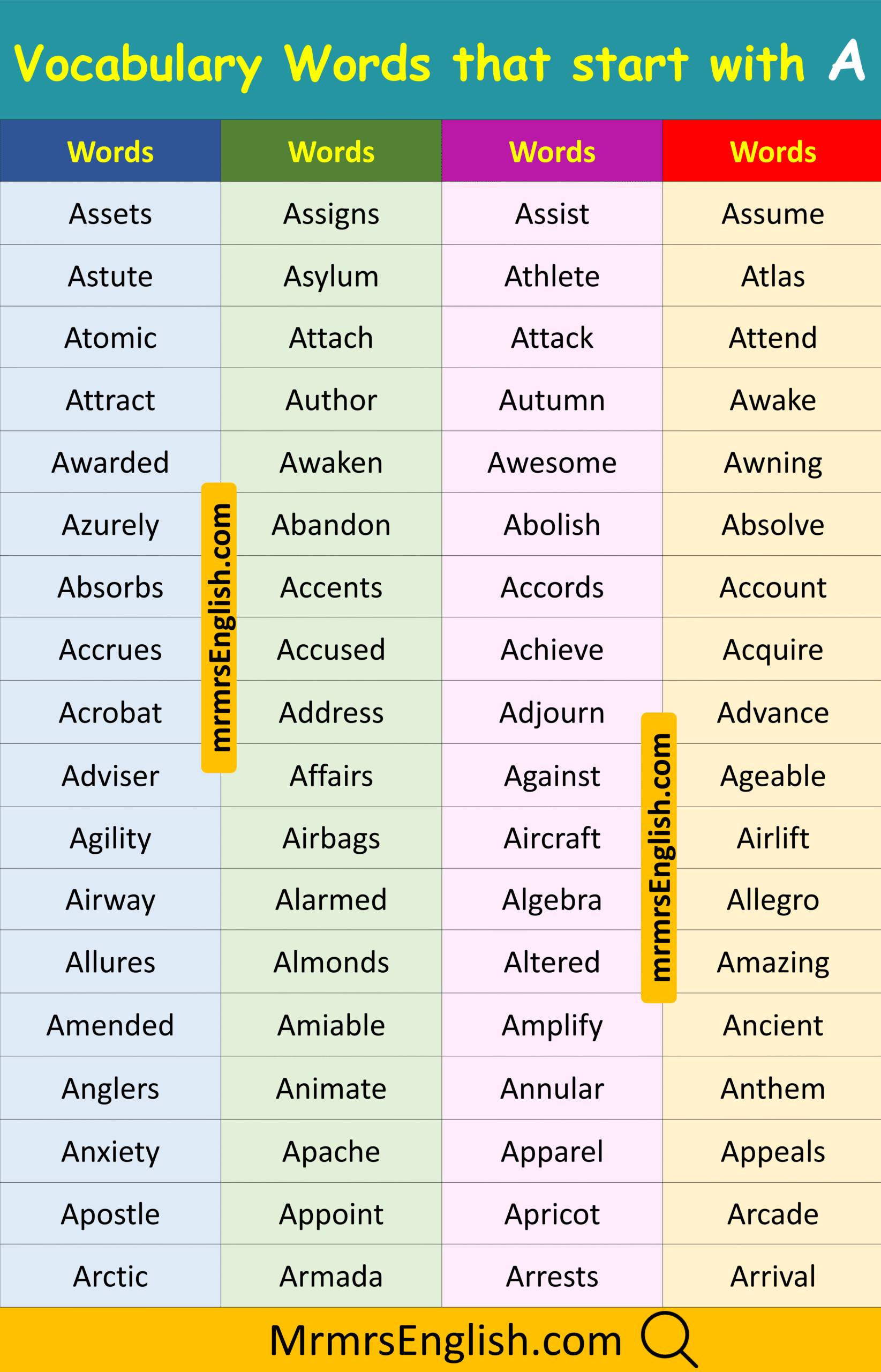 Essential Vocabulary Words that Start with A