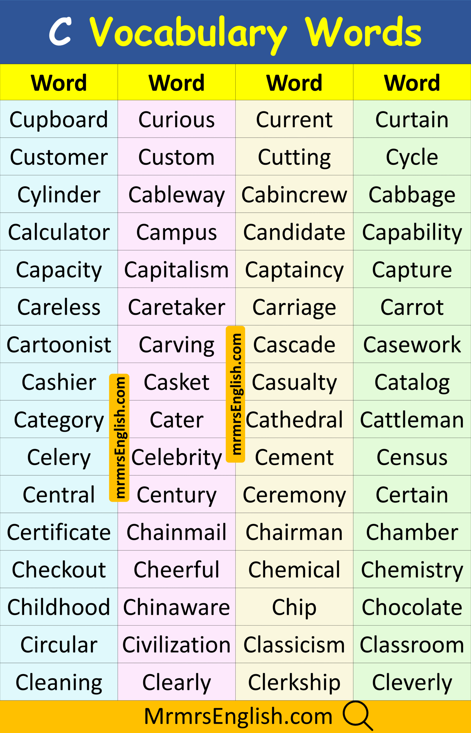| Cyclist | Cylinder | Czar | Cabinmate |