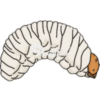 A water insect whose larvae build protective cases from sand, leaves, and tiny stones.