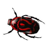 A hard-shelled insect, some species live underwater and swim using strong back legs.