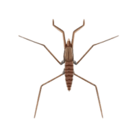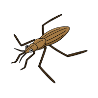 A thin water insect that slowly walks across the surface while searching for small prey.