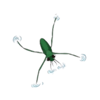 A tiny jumping aquatic creature that moves quickly through water and feeds on small particles.