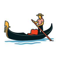 A long narrow boat used in Venice, Italy, rowed by a person standing at the back.