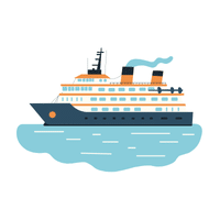 A large water vessel made to travel across seas and oceans carrying people or goods.