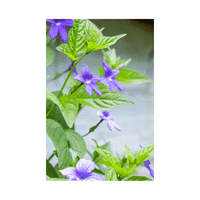 A small flower similar to pansy, blooming in purple, blue, or yellow shades.