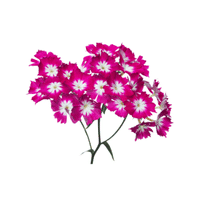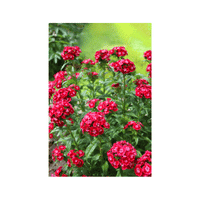 A bright flower with fringed petals, often pink or red, known for its sweet fragrance.