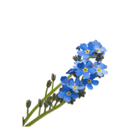 A small blue flower with a yellow center, symbolizing true love and memories.