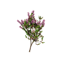 A bushy plant with tiny pink or purple flowers that bloom in cold weather.