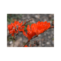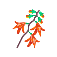 A winter plant with bright orange or red flowers shaped like small trumpets.