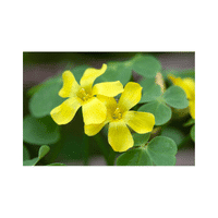 A clover-like plant with delicate flowers in pink, yellow, or white.