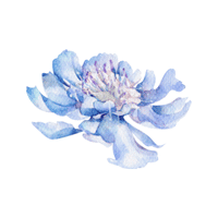 A pincushion-like flower in soft colors like blue, purple, or white.