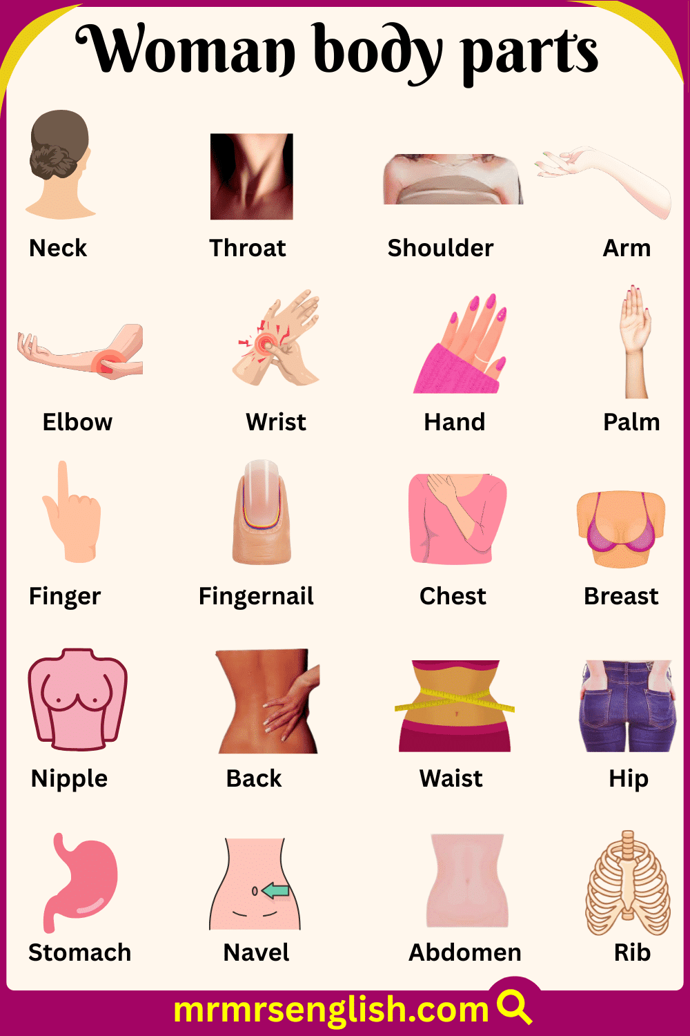 The human body is a wonderful creation, and learning its parts helps us understand ourselves better. Knowing the names of body parts is very important in daily life, especially for learning, health, and communication. For women, understanding body parts clearly can help in education, medical discussions, and personal care. In this article, we have shared woman body parts names in English with clear pictures to make learning simple and meaningful. This guide is designed to help students, teachers, and learners build their vocabulary in an easy and respectful way.